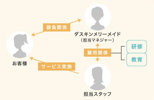 「家事おてつだいサービス」を担当するスタッフ(=メリーさん)は、ダスキンが厳しい基準で採用し、直接雇用しています。信頼のおける家事のプロが、快適な時間をご提供します。
