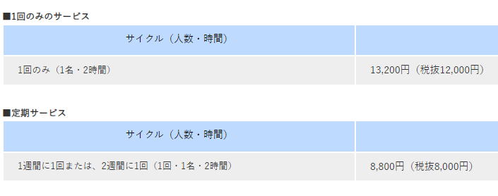 ※男性のみでご在宅の場合は、スタッフ2名でお伺いいたします。その場合、スタッフ2名、半分のお時間でサービスをいたします。