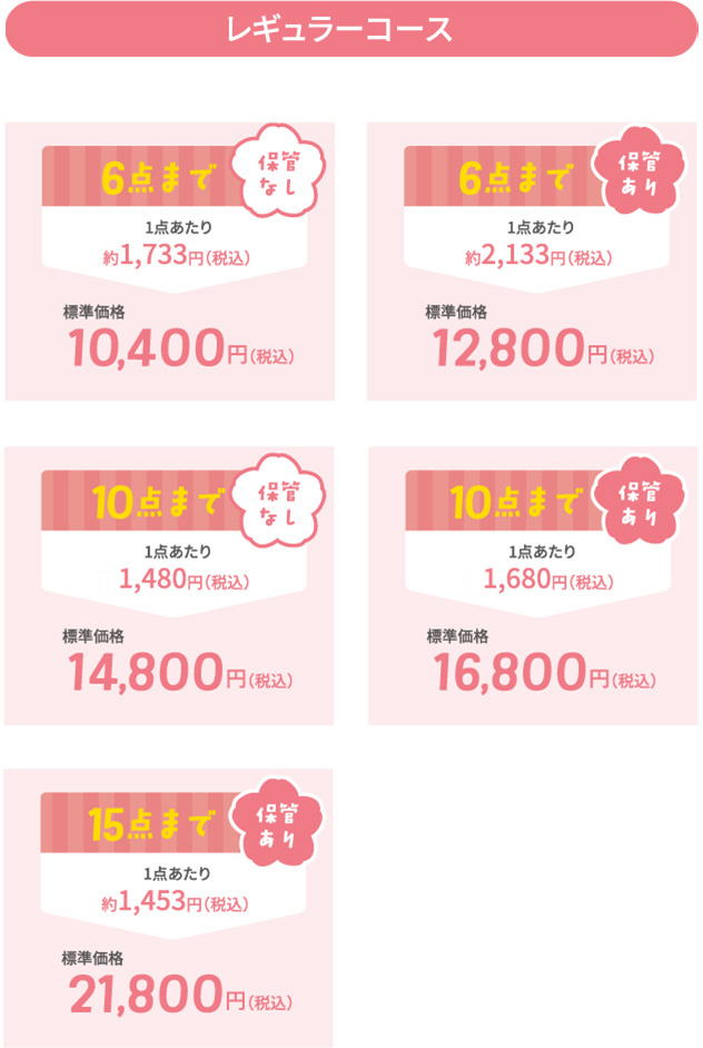 標準料金10,400円(税抜9,455円)〜でお届けするサービスです。